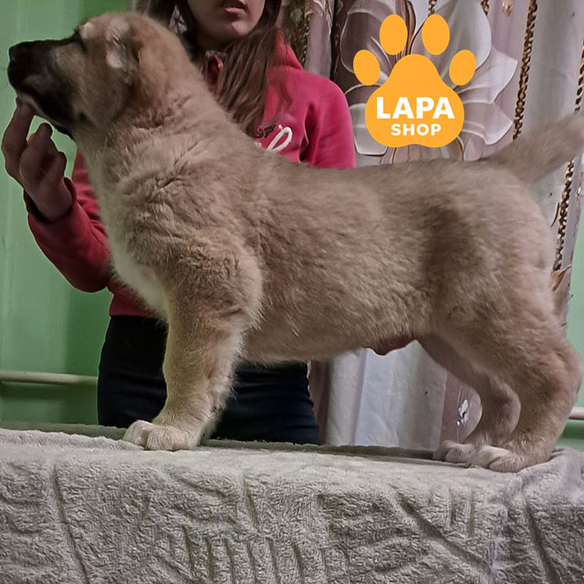 Девочка породы среднеазиатская овчарка обладает мощной, гармоничной внешностью и выразительным видом, характерным для этой величественной породы. Палевая шубка подчеркивает ее крепкий скелет и массивное телосложение, формируя настоящий образ будущего охранника. Она выглядит уверенно и породно, производя сильное впечатление с первого взгляда.