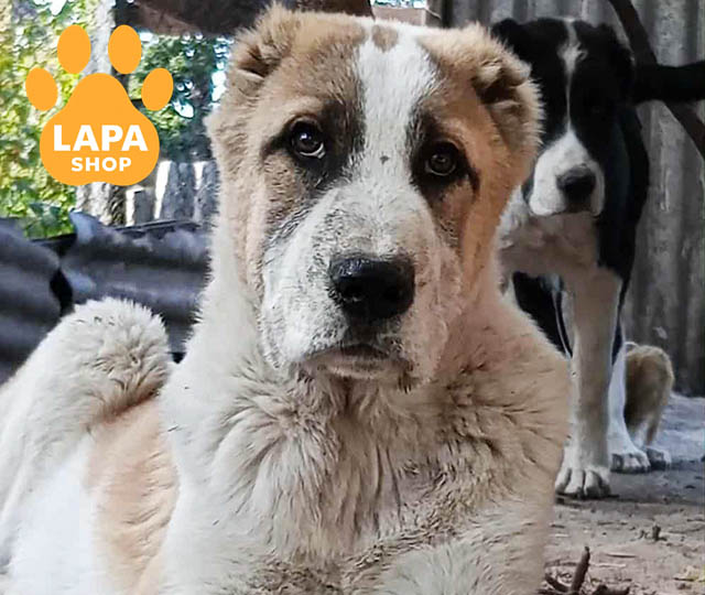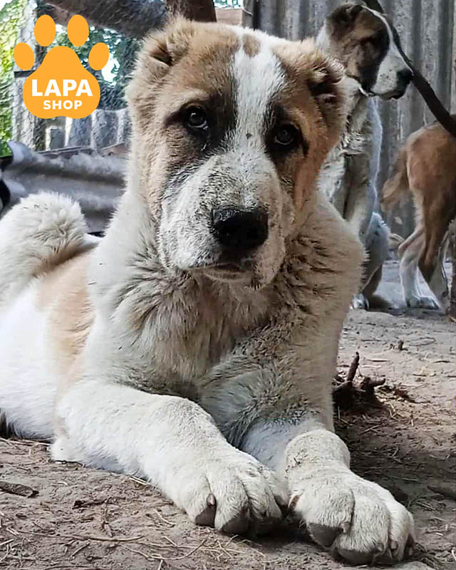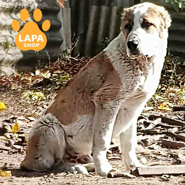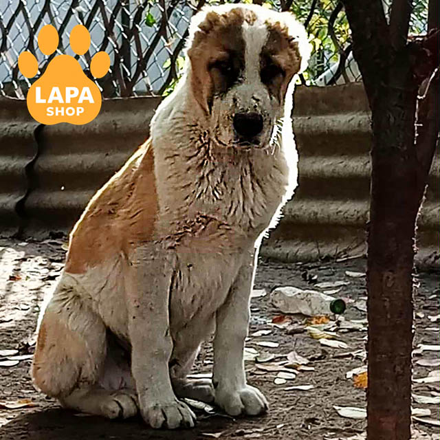 Красивый мальчик породы среднеазиатской овчарки с эффектным рыже-белым окрасом. Его мощное телосложение и уверенный вид подчеркивают благородство и силу этой древней породы.
