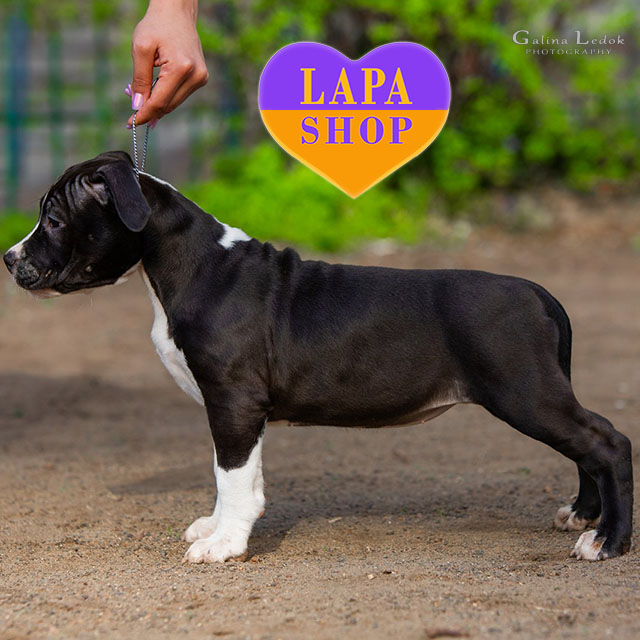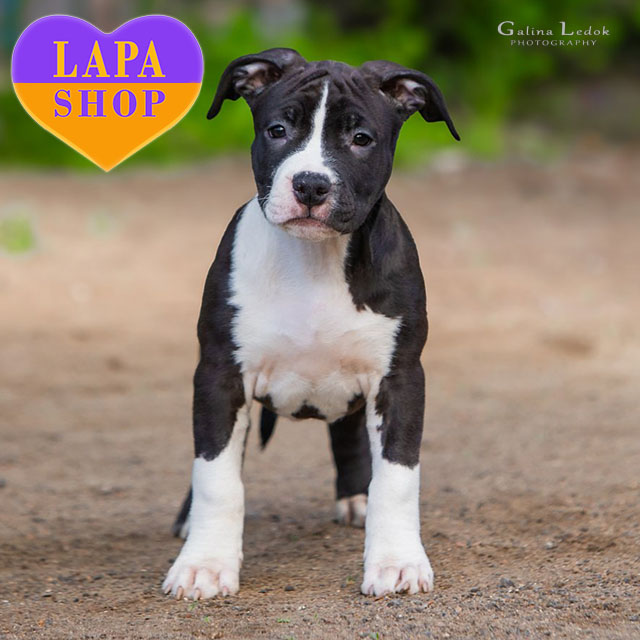 Эта очаровательная девочка породы американский стафордширский терьер с роскошной черно-белой окраской. Ее изящный вид и гармоничное сочетание цветов делают ее настоящим украшением породы. Она поражает своей грацией и крепким телосложением, покоряя с первого взгляда.
