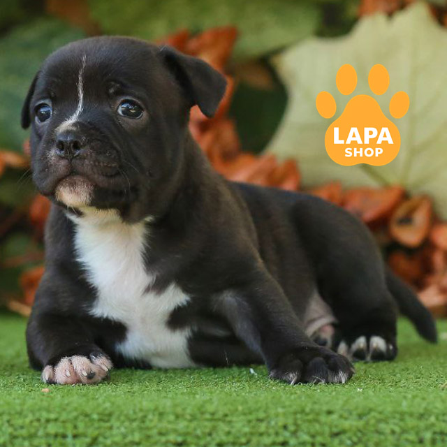 Этот красивый мальчик породы стаффордширский бультьер отличается крепким и пропорциональным телосложением и привлекательным внешним видом. Его эффектный окрас подчеркивает гармонию формы и силу породы. Малыш выглядит ухоженной и готов стать настоящим другом для семьи.