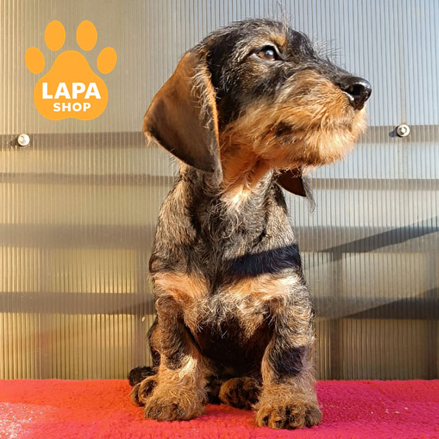 Изысканный мальчик породы такса стандартная жестошерстная из окраса wild boar. Его благородный вид и плотная текстурная шерсть придают ему особый шарм.
