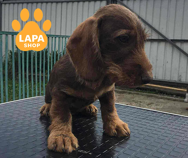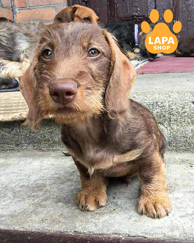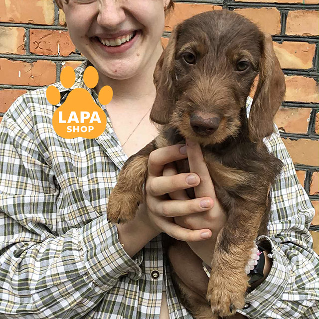 Lasso – стандартная жестошерстная такса шоколадного окраса. Его длинные ушки, умный взгляд и грациозный хвостик создают образ настоящего маленького рыцаря. Он ласков, добр и готов дарить своей семье нежность и тепло.