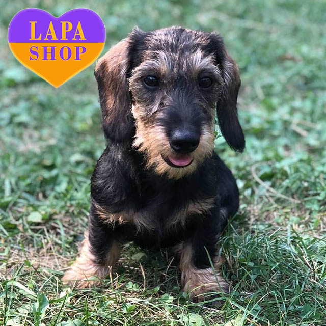 Эта очаровательная такса с прекрасной темной кабаниной окраской и элегантной внешностью. Она носит сильный характер, но при этом ласкова и мила, любит быть на руках, обожает спать рядом и всегда готова стать частью семьи. Она отлично взаимодействует с людьми, спокойно реагирует на чужих и всегда готова к игре. Весит 5,5 кг.