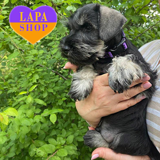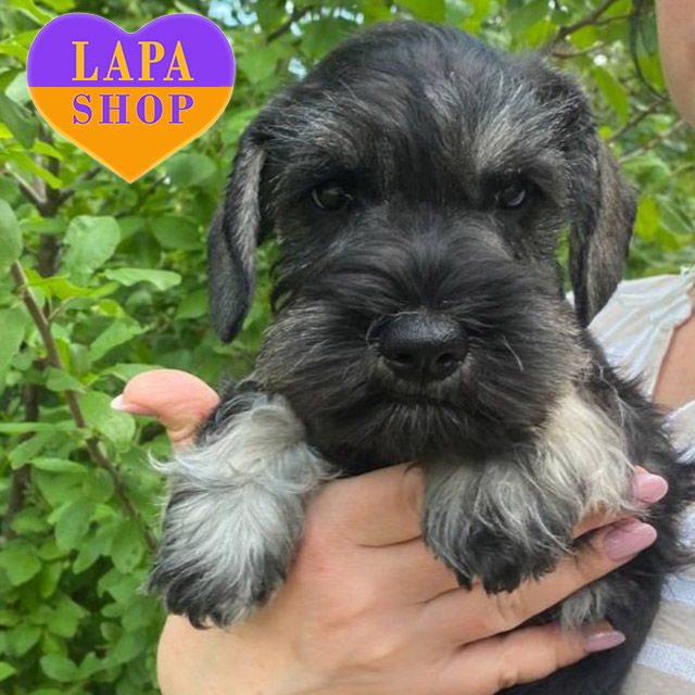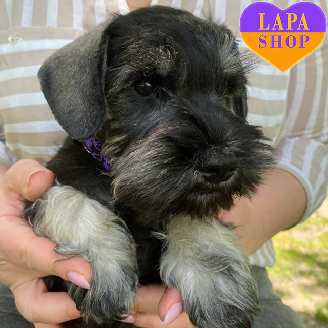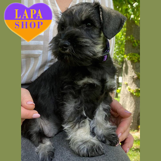 Щенок Bravo имеет классический и очень выразительный окрас перец с солью, который подчеркивает его стильную внешность. Компактный корпус, гармоничные пропорции и верная голова делают его перспективным представителем породы. Его аккуратная шерсть и эффектная внешность привлекают внимание с первого взгляда.