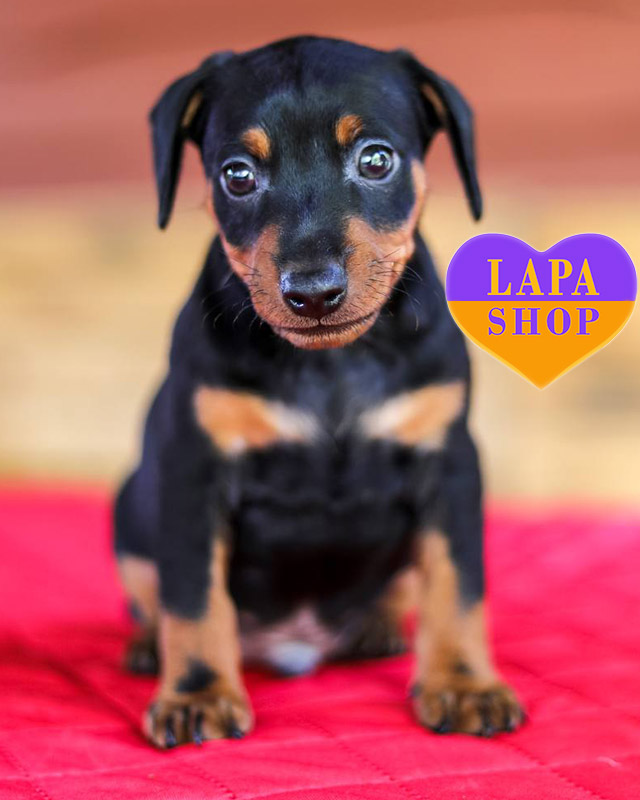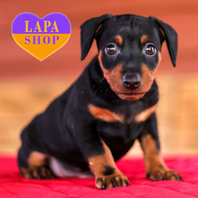 Этот стильный мальчик породы цвергпинчер с классическим черно-подпалым окрасом. Его стройный корпус, глянцевая шерсть и выразительная мордашка создают элегантный образ. Контрастные подпалы придают ему особый шарм и подчеркивают породную выразительность.
