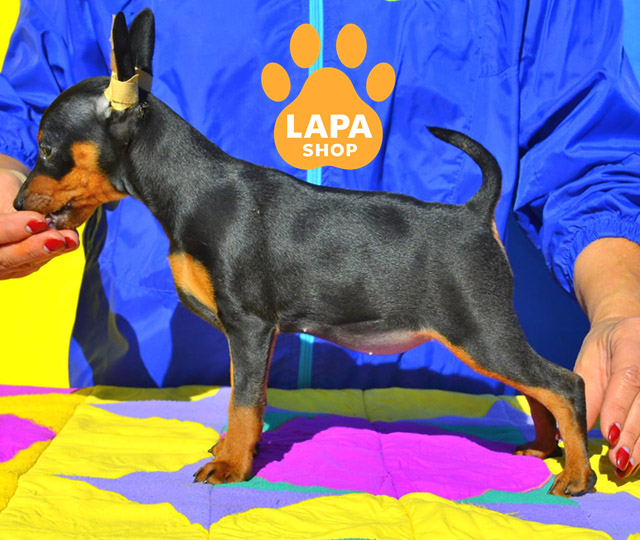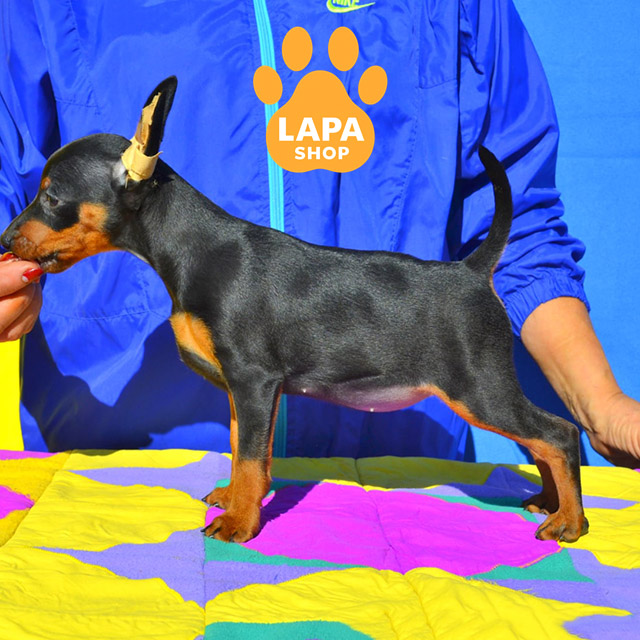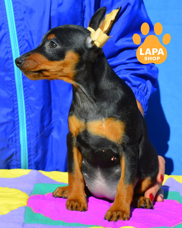 Love-Leila — милая девочка породы цвергпинчер с классическим черно-подпалым окрасом, что придает ей выразительный и элегантный вид. Она имеет стройный силуэт и гармоничные породные черты, делающие ее настоящей маленькой красавицей. Ее яркие поджоги отлично контрастируют с насыщенным черным цветом шерсти.