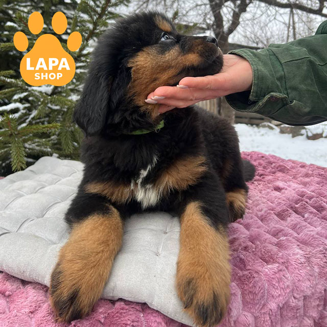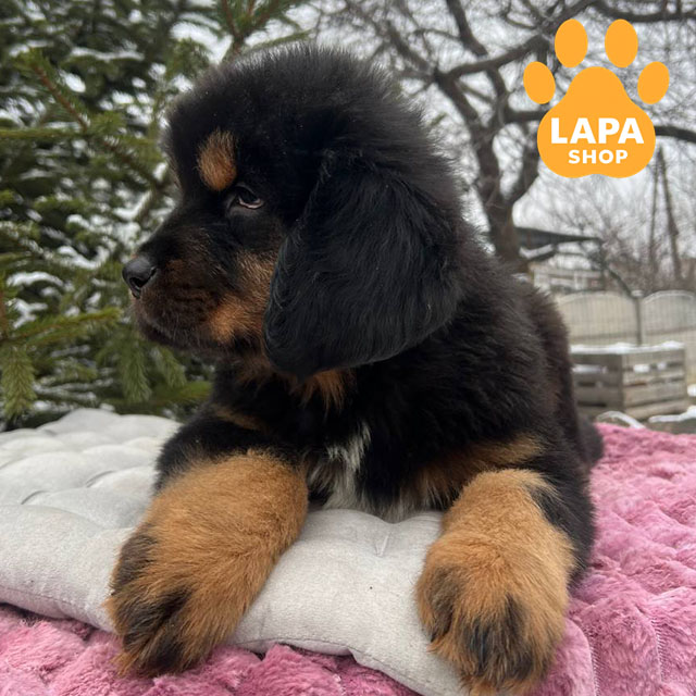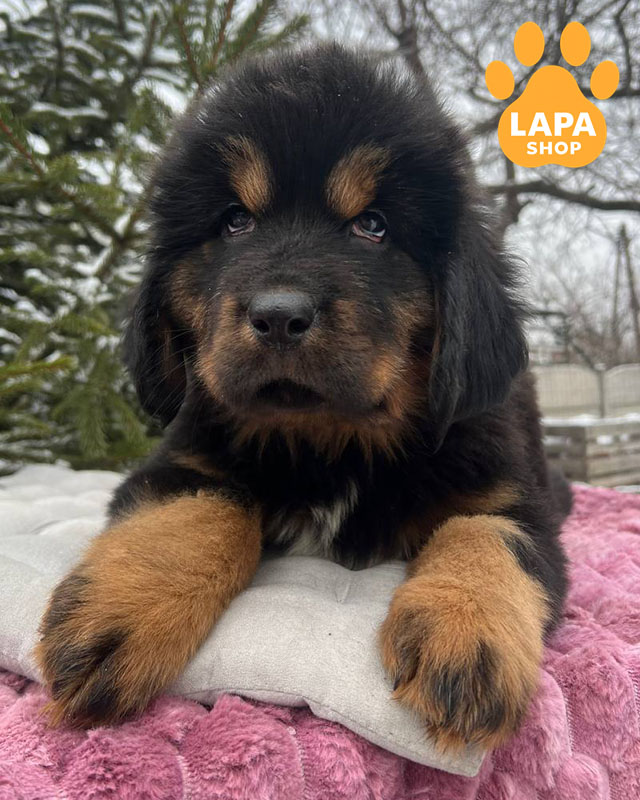 Эта эффектная девочка породы тибетский мастиф с выразительным черным подпалым окрасом, подчеркивающим породный тип и благородный вид. Она имеет массивный, гармоничный корпус и уверенную осанку, подчеркивающую породную силу и благородство.