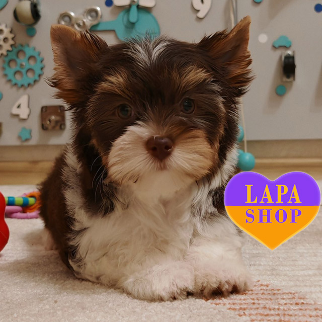 Тимати – очаровательный мальчик породы биро йоркширский терьер с изысканной триколорной окраской. Его шелковистая шерсть, гармоничное телосложение и безупречный вид делают его отличным представителем породы.