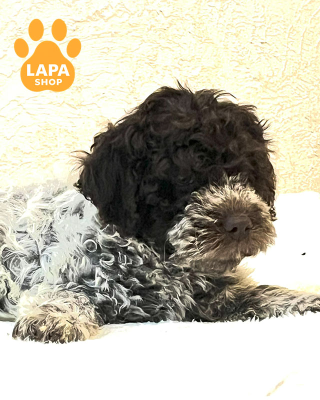Этот стильный мальчик породы лаготто-романьоло с эффектным окрасом brown roan, которое выглядит глубоким и благородным. Его плотная, вьющаяся шерсть с характерной фактурой подчеркивает породный тип и придает облику особый шарм. Гармоничное телосложение и выразительный взгляд делают малыша очень привлекательным.