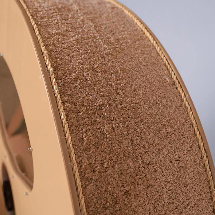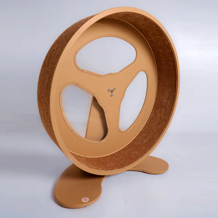 Колеса изготовлены из высококачественной фанеры и покрыты экологичным лаком. Для создания беговой дорожки используется ковролин. Колесо поставляется в разобранном состоянии, но легко собрать как конструктор.