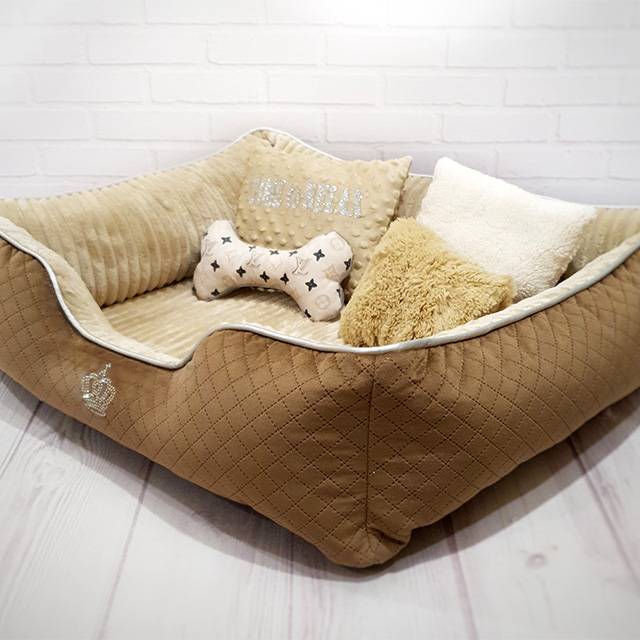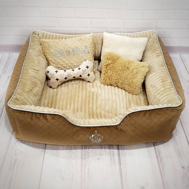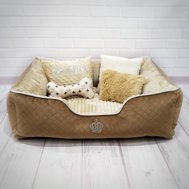 Лежанка для собак и котов — это идеальное место для отдыха вашего пушистого друга. Ее натуральные оттенки коричневого и карамельного цветов гармонично сочетаются и создают теплую и уютную атмосферу, дополняя любой интерьер.