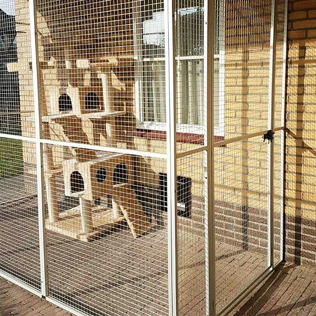 Представляємо вам вуличний вольєр для тварин. Це спеціально облаштована конструкція, яка дозволяє котам і собакам виходити на вулицю і при цьому залишатися у безпеці. Має захисну сітку або решітку, що не дає втікти, а також не дає потрапити до вольєру небажаним гостям.