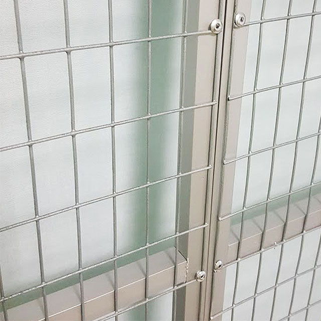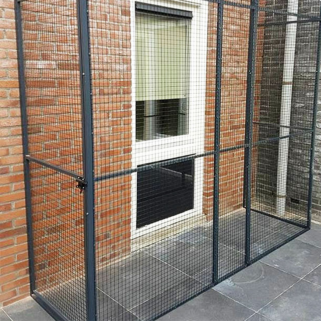 Вольєр виготовлений з металевих грат з великим осередком з оцинкованного прута завтовшки до 2 мм, пофарбованого порошковою фарбою, або з нержавіючої сталі.