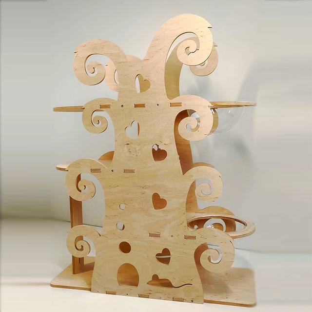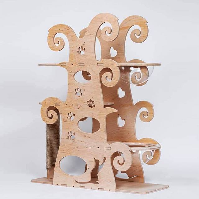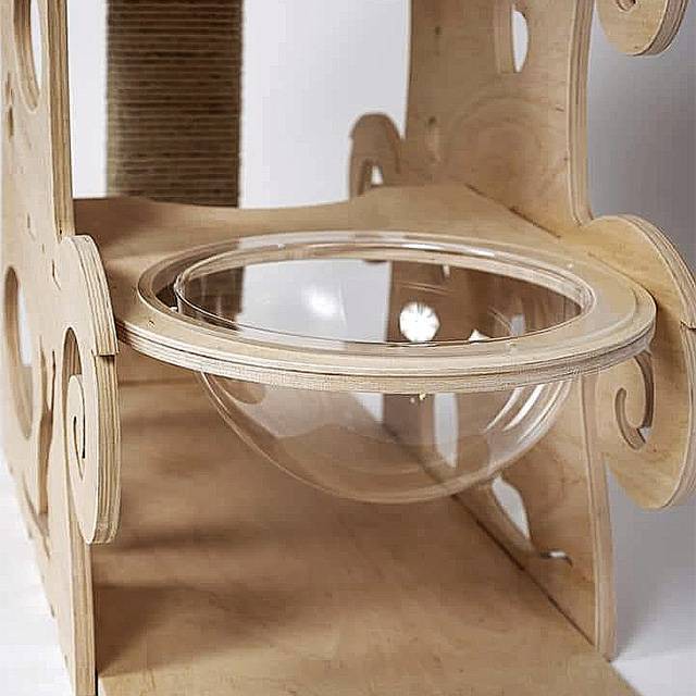 Це дерево сподобається не тільки котикам, але і вам. Воно прекрасно вписується в інтер’єр, додаючи йому ексклюзивності і оригінальності. При цьому воно достатньо компактне: можна поставити і в коридорі, і в спальні, і на кухні. Дерево має вертикальну джутову дряпку збоку і декілька прозорих лежанок-сфер на різних рівнях. Тому ним можуть одночасно користуватися декілька котів.