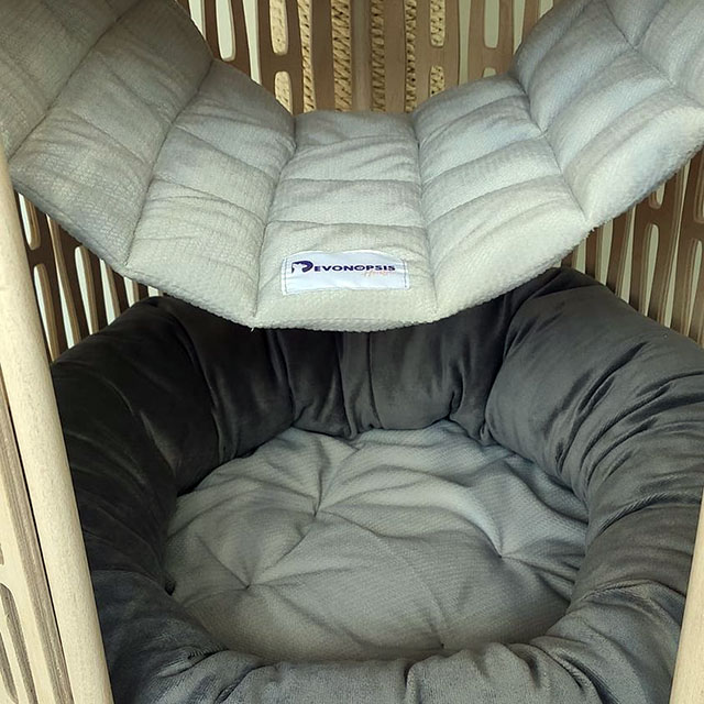 Лежаки виконані з тканини “антикіготь”. Подушки і гамаки можна легко знімати для прання, що робить догляд за комплексом зручним.