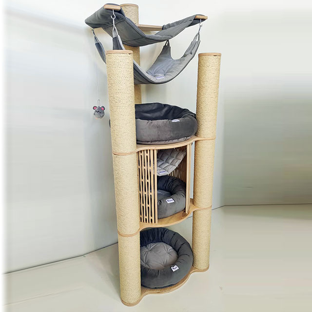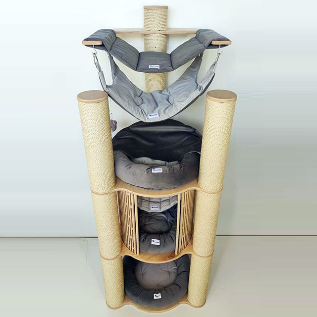 Цей стильний комплекс включає в себе декілька дряпок, гамаків і лежаків, а також має невеликий будиночок. Цей комплекс підходить як для одного-двох котів, так і для багатьох кішок. Особливою рисою комплексу є високоякісна намотка на дряпках. Вона виготовлена з сізалю товщиною 8 мм, який надзвичайно міцний. Кожен моток проклеєний і додатково закріплений, щоби забезпечити тривалий термін служби.