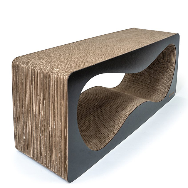 Велика дряпка-лежанка для вашого улюбленого кота, виготовлена з екологічно чистого картону з 5 шарів. Ці 5 шарів гарантують, що ваш пухнастий друг буде точити свої кігті близько року і навіть довше. Модель оснащена дерев’яними фасадами та має хвилеподібну форму, тому вона дуже зручна. Аромат дерева нагадає котику дику природу з деревами. Це ручна робота.