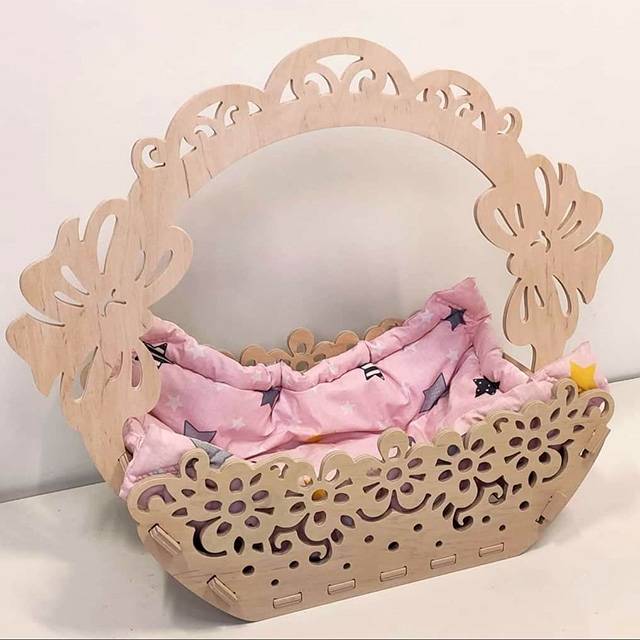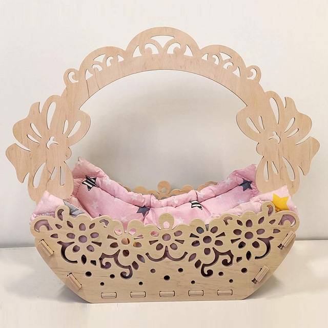 Це не просто кошик, це лежанка, де ваш котик зможе безпечно відпочивати. Кошик прикрашає різьба у формі квітів. Всередині знаходиться м’яка лежанка з бавовни. Також ця лежанка — прекрасна фотозона!