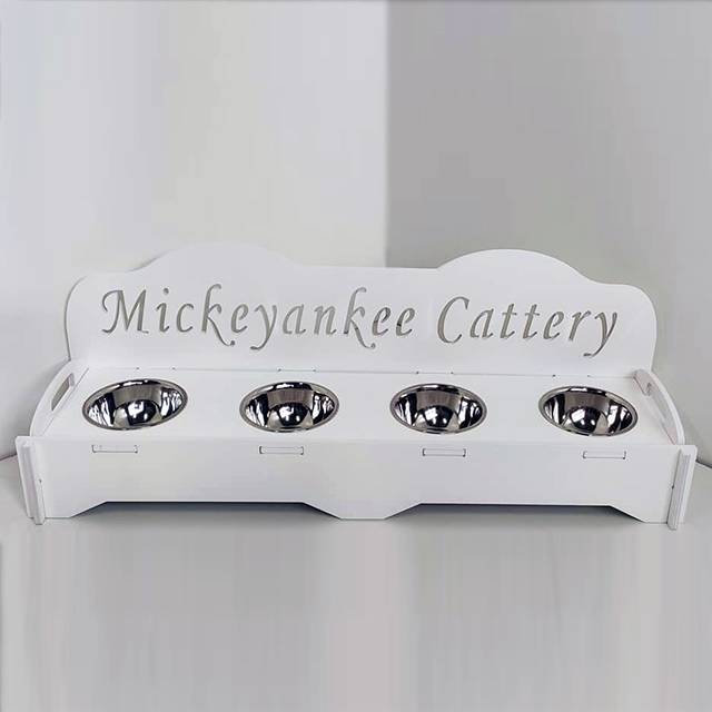 Підставка з 4 мисками в комплекті ідеально підходить для декільков кошенят. Стоїть міцно, не хитається.