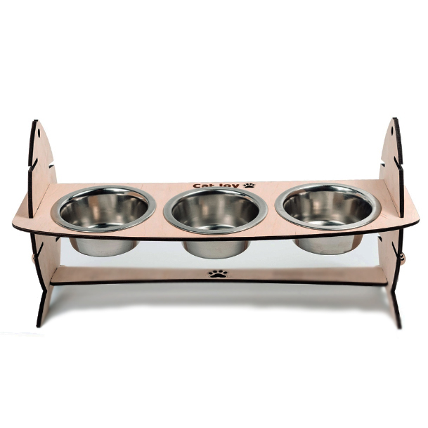 Виробник оснастив годівницю трьома мисочками — двома для їжі та одною для води. Ці миски легко виймаються та встановлюються назад. Незалежно від того, яка порода вашого кота чи маленького песика, годівниця годиться для всіх. Годівниця дуже стійка. Ви можете бути впевнені, що ваш пухнастий співмешканець не зможе її перевернути.