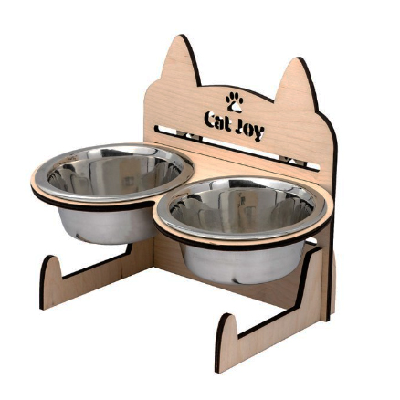 Годівниця виготовлена з натурального дерева, що гарантує екологічну безпеку та природність. Забудьте про шкідливі пластикові вироби. Годівниця має дві мисочки — для їжі та води, які легко виймаються та встановлюються назад.