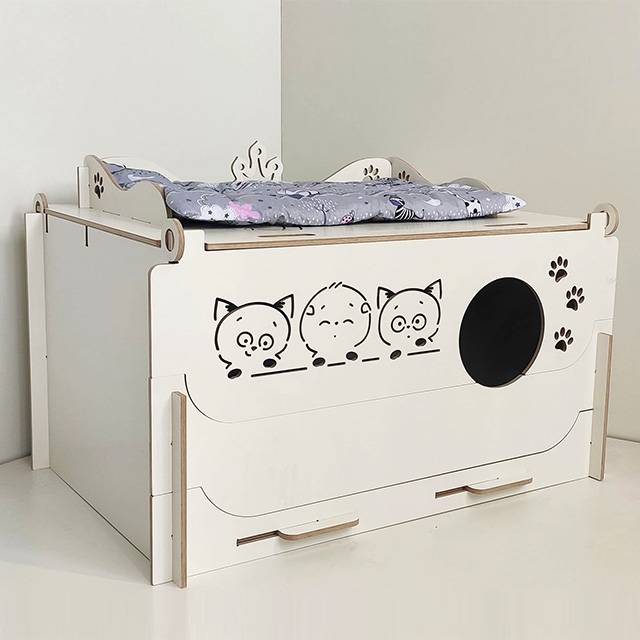 У материнському боксі все спрямоване на комфортне перебування киці та її малят після народження. Бокс надає затишок та безпеку під час догляду за кошенятами, що є важливим для їх здоров’я та здоров’я матері. Вихід доступний лише для киці, кошенята залишаються всередині. Також є зручна підйомна кришка для легкого доступу заводчика.