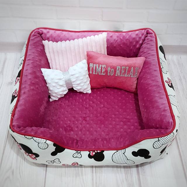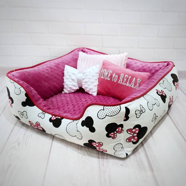Ця лежанка виготовлена з бавовняної тканини фланель з малюнком та прикрашена м’яким плюшем малинового відтінку. Ніжний кант з екошкіри малинового кольору додає лежанці стильності. Вологостійке дно забезпечує збереження сухості.