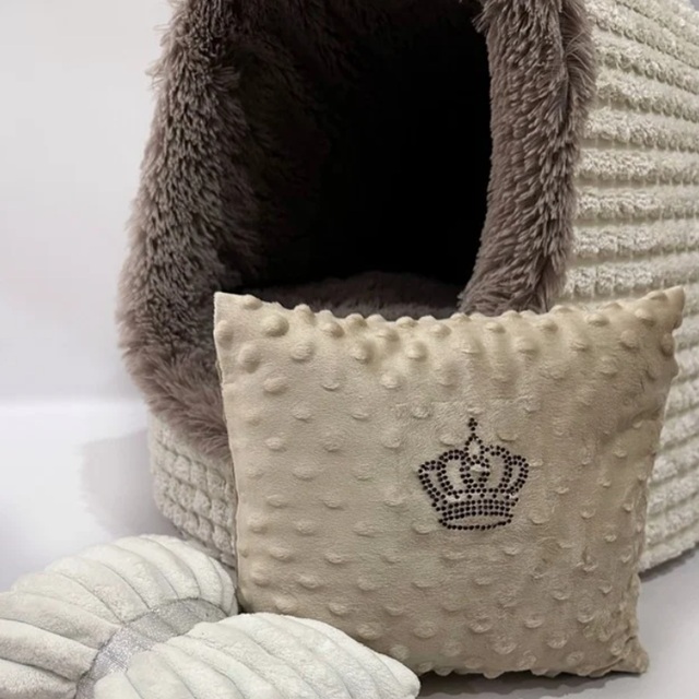 Вишукана двостороння знімна подушка всередині гарантує комфортний відпочинок. Також в комплекті декоративна подушка та яскрава іграшка. Логотип із глітером та блискучими стразами робить цей будиночок ще більш вишуканим та елегантним.