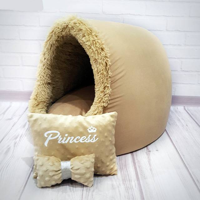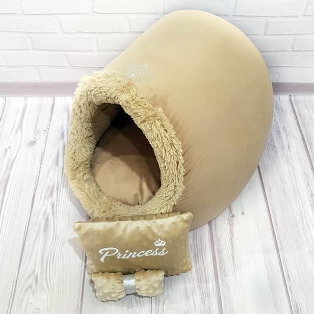 До вашої уваги вишуканий будиночок для маленької принцеси. Цей неймовірно миловидний будиночок ідеально підходить для пушистих улюбленців вагою до 4 кг. Елегантність і стиль цього будиночка зачаровують з першого погляду. Меблева тканина велюр в ніжному відтінку карамель разом із хутром-травкою створює атмосферу казкової розкоші.