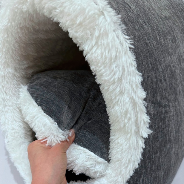 Представляємо вам будиночок для котів і собак, спеціально створений для мініатюрних улюбленців вагою до 4 кг. Цей будиночок — справжнє втілення комфорту та стилю. Він виготовлений з високоякісної меблевої тканини — зносостійкого велюра. Плюшева обшивка додає комфорту вашому чотирилапому другові.