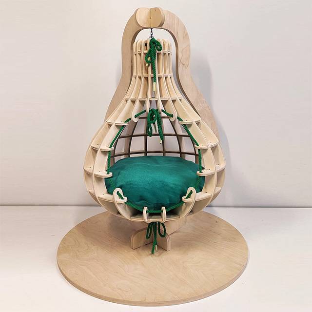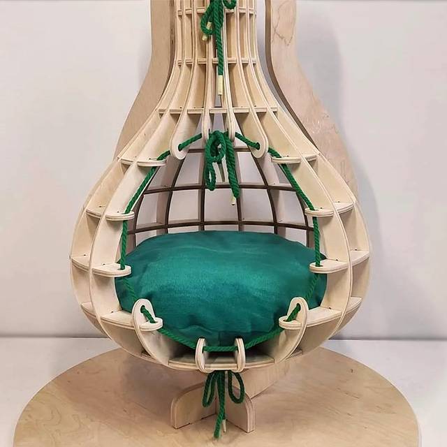 Гойдалка для вашого котика, що створює атмосферу комфорту та безпеки. В комплекті йде ніжна подушка. Наволочка знімається, що дозволяє її легко прати окремо. Для створення лежанок виробник використовує синтепон в якості наповнювача. Якщо ви хочете отримати такий товар з лежаком іншого кольору, вкажіть це при замовленні онлайн. Також ви можете замовити інший колір фанери.