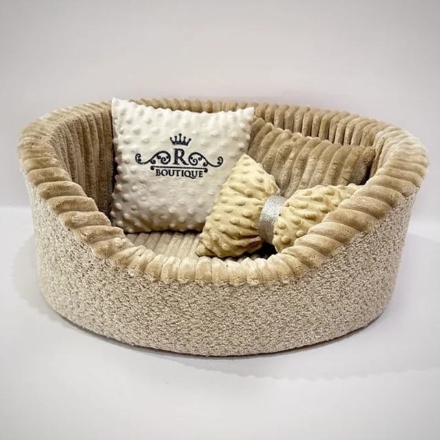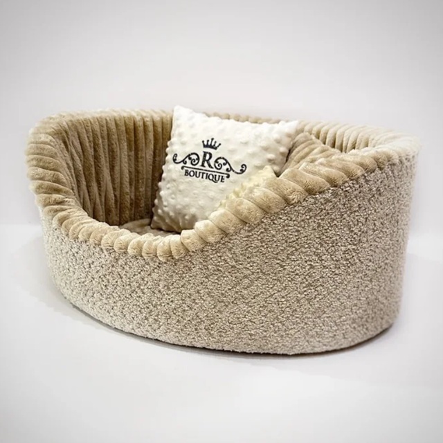 Лежанка для собак і котів у коричнево-бежевому відтінку надасть вашому улюбленцю комфорт. Овальна форма з бортами створює затишну атмосферу для відпочинку.