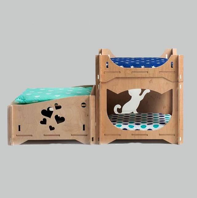 Міні-комплекс розрахований мінімум на трьох котиків, якщо кожен займе по цілому модулю. Лежанки йдуть у комплекті.