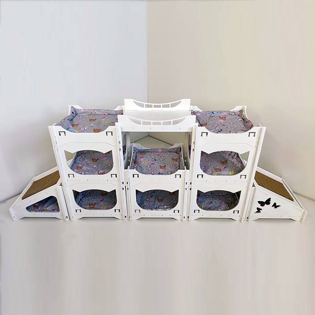 Компактний комплекс, який може вмістити 11 котиків. Все завдяки його ергономічній будові. Всі модулі стають впритул один до одного і мають дахи з лежанками. Поєднує їх між собою місток, де теж можна відпочивати. З боків розташовані дряпки під нахилом, під якими теж є місця для відпочинку.