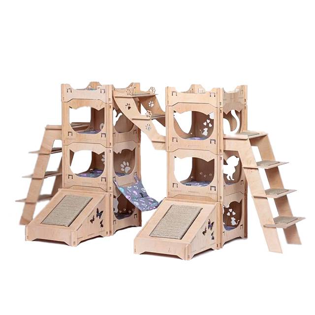 Великий комплекс на 11 котів. Складається з 8 окремих модулів, 3 сходинок із дряпками і гамака. На даху розташовані 2 лежанки.
