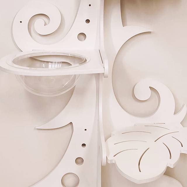 Це дерево одночасно і декоративне, і функціональне. Воно становиться до стіни і займає мало місця. Котики зможуть відпочивати в прозорих лежанках-сферах і на полицях. Дерево зроблено з високоякісної міцної фарбованої фанери. Використовуються екологічні та безпечні фарби на водній основі, які не випаровують шкідливі речовини. Такі фарби підходять навіть для дитячих меблів.