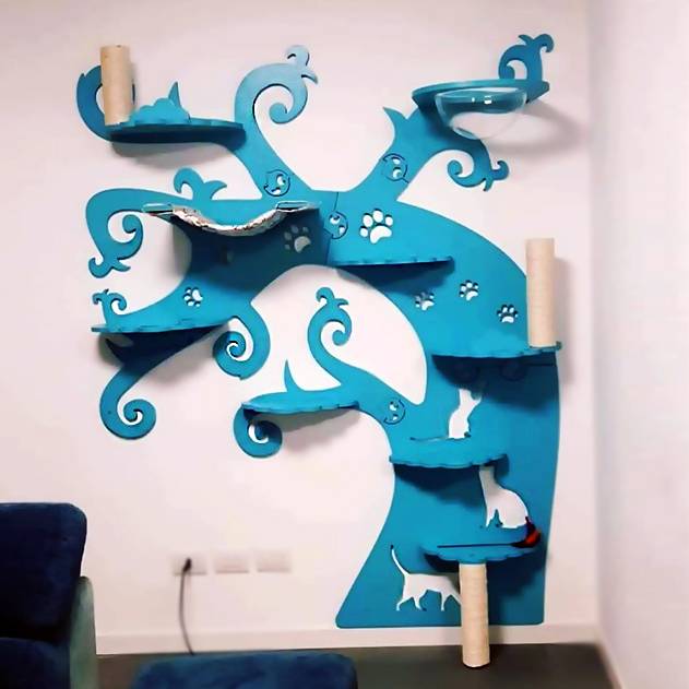 Настінний комплекс для відпочинку декількох котів. Включає в себе: 7 полиць, сферу і гамак. Дряпки на фото в комплект не входять, їх треба замовляти додатково.